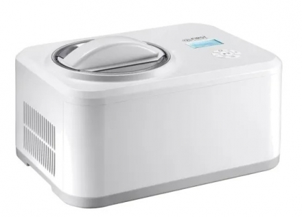 Морозивниця для приготування м’якого морозива потужністю 120 Вт оснащена дисплеєм і таймером. Має пластиковий корпус та чашу об’ємом 1,5 л.